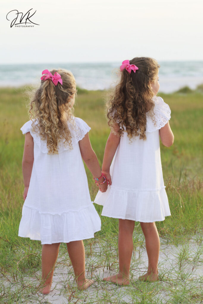 When Deana reached out about a family session at the gorgeous Siesta Key, I knew right away it would be a blast! She brought along her daughter, twin granddaughters, and son-in-law—and surprise! Her husband’s family joined in for a few lovely shots too. After a few rainy days, the weather cooled off perfectly, setting the stage for a dreamy evening shoot.