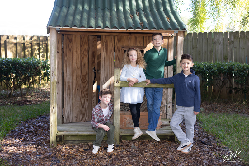 - Stage a “sports day” shoot with matching athletic gear and props like soccer balls or golf clubs.